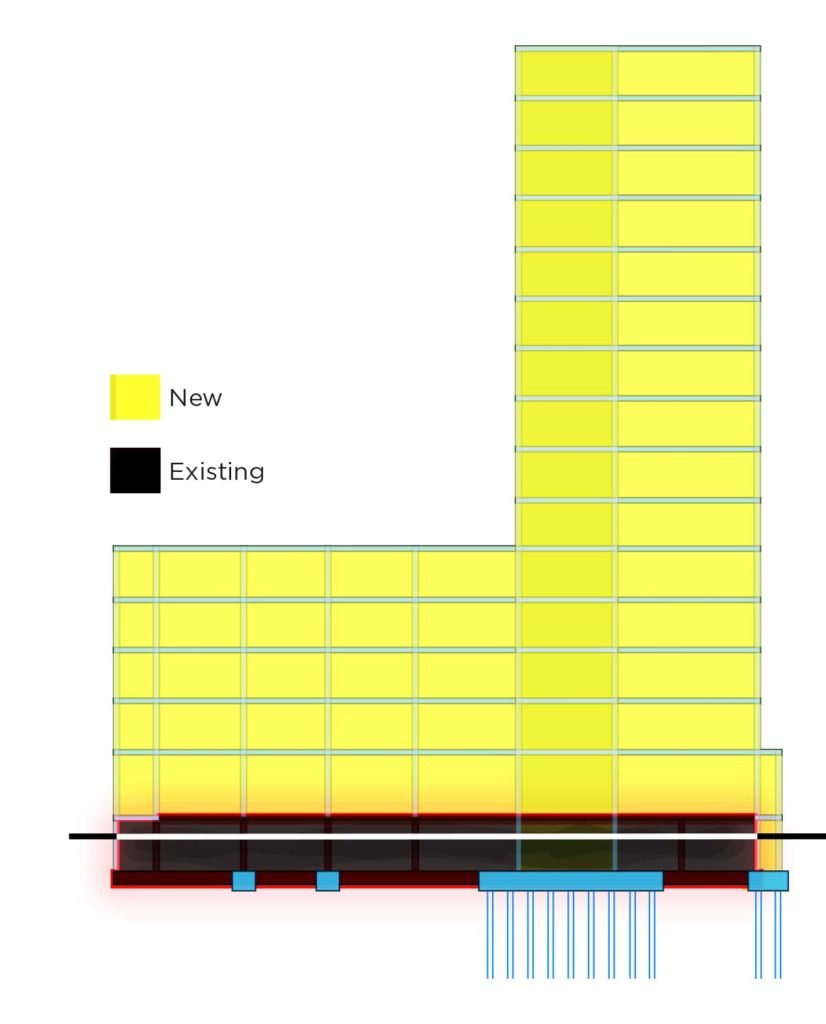 It is estimated that 20% of the existing structure’s embodied carbon can be retained through this development approach.